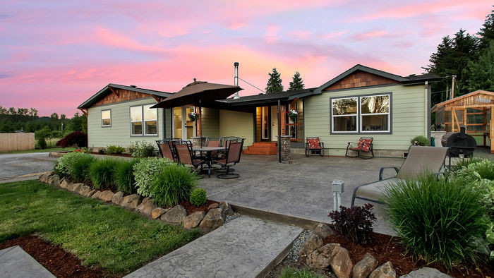 This was a top-to-bottom complete remodel of a home in Molalla Oregon. New interior, new doors, new roofing, new siding, new paint, new windows, new flooring, new carpet, butcher block counter tops, tile bathrooms and entry way, and more.